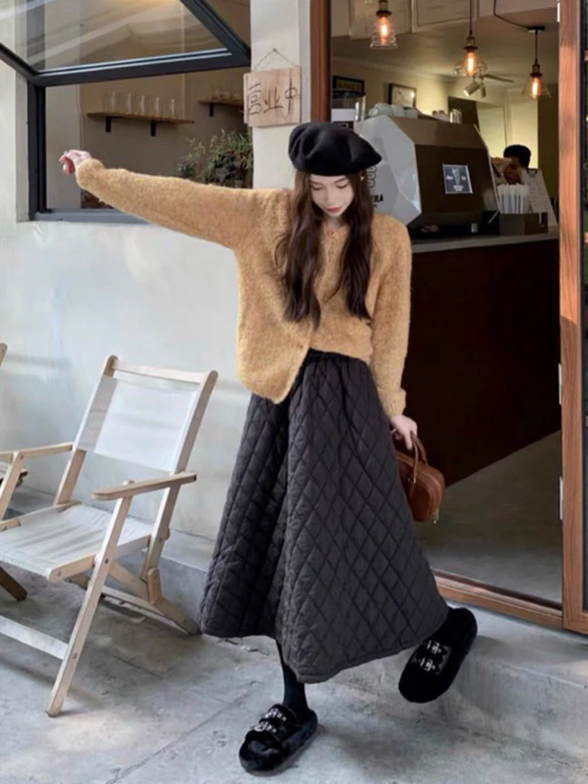 🧵 Quilted A-Line Long Skirt 🧵