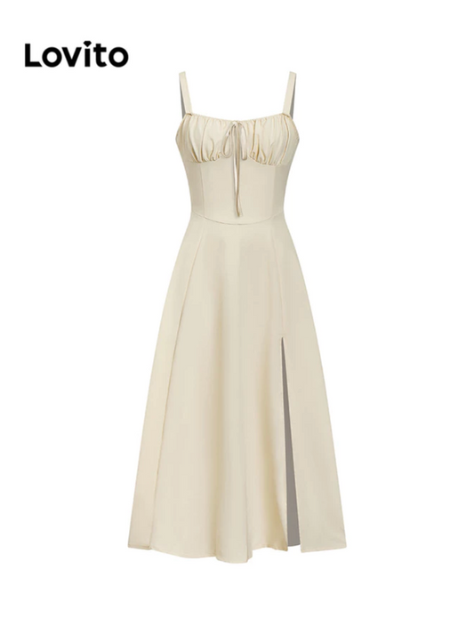Drawstring Tie-Back Slit Dress