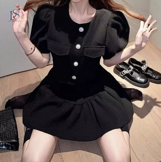 ✨ Puff Sleeve 2-Piece Black Skirt Set ✨