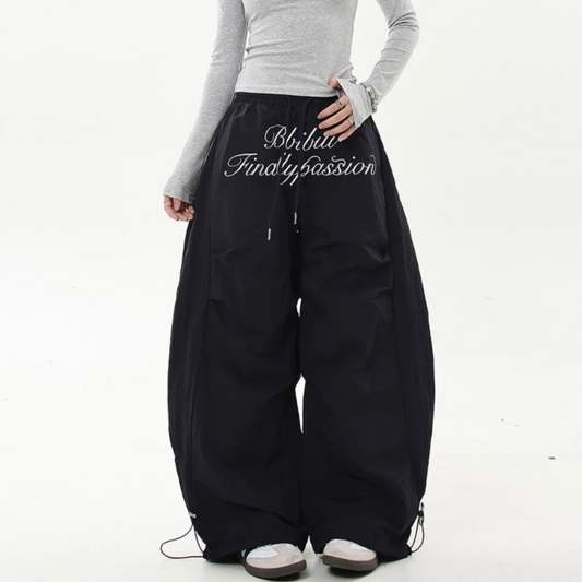 Letter Embroidery Panel Wide Pants