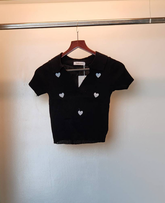 Heart-embroidered Knit Polo