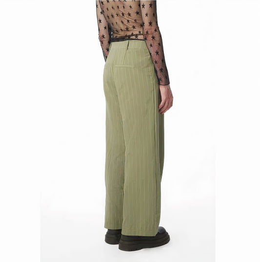 🌿Thaythem | Loungy Striped Relaxed Fit Pants in Olive green🌿