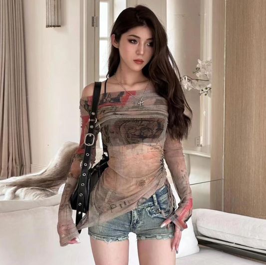 🌟Printed Mesh Top + Inner Crop Set 🌟