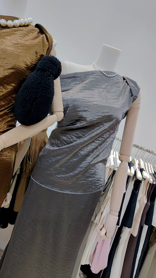 🌟 Metallic One-Shoulder Top + Skirt Set 🌟
