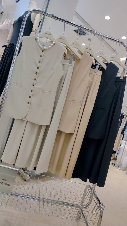 🌈 Sleeveless Buttoned Top & Pleated Skirt Set 🌈