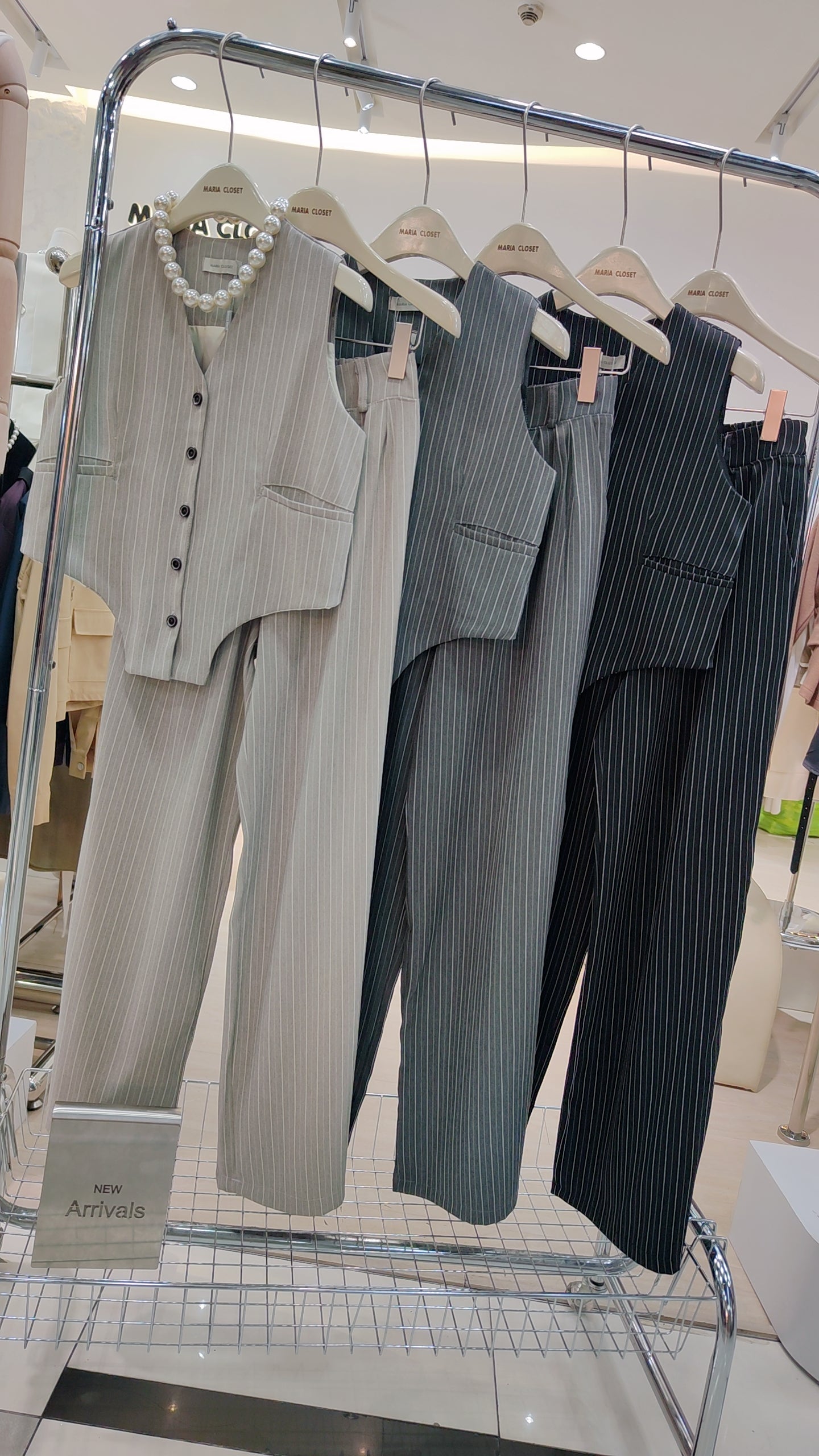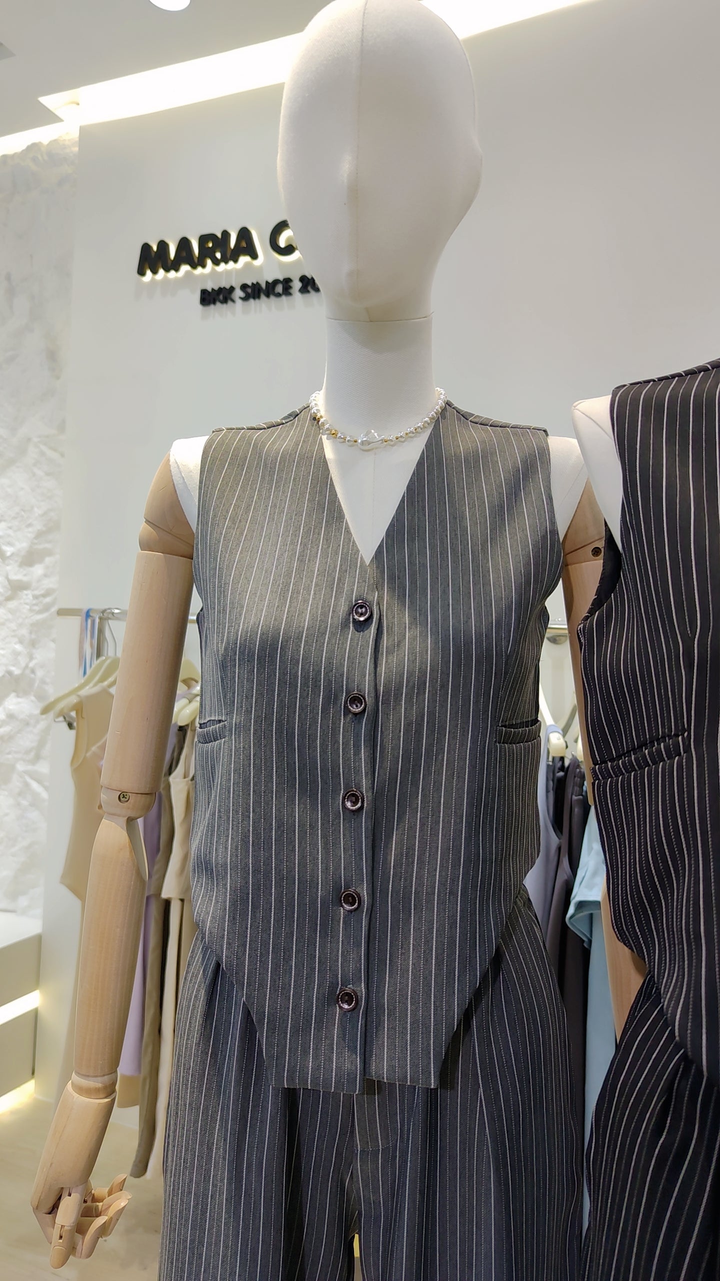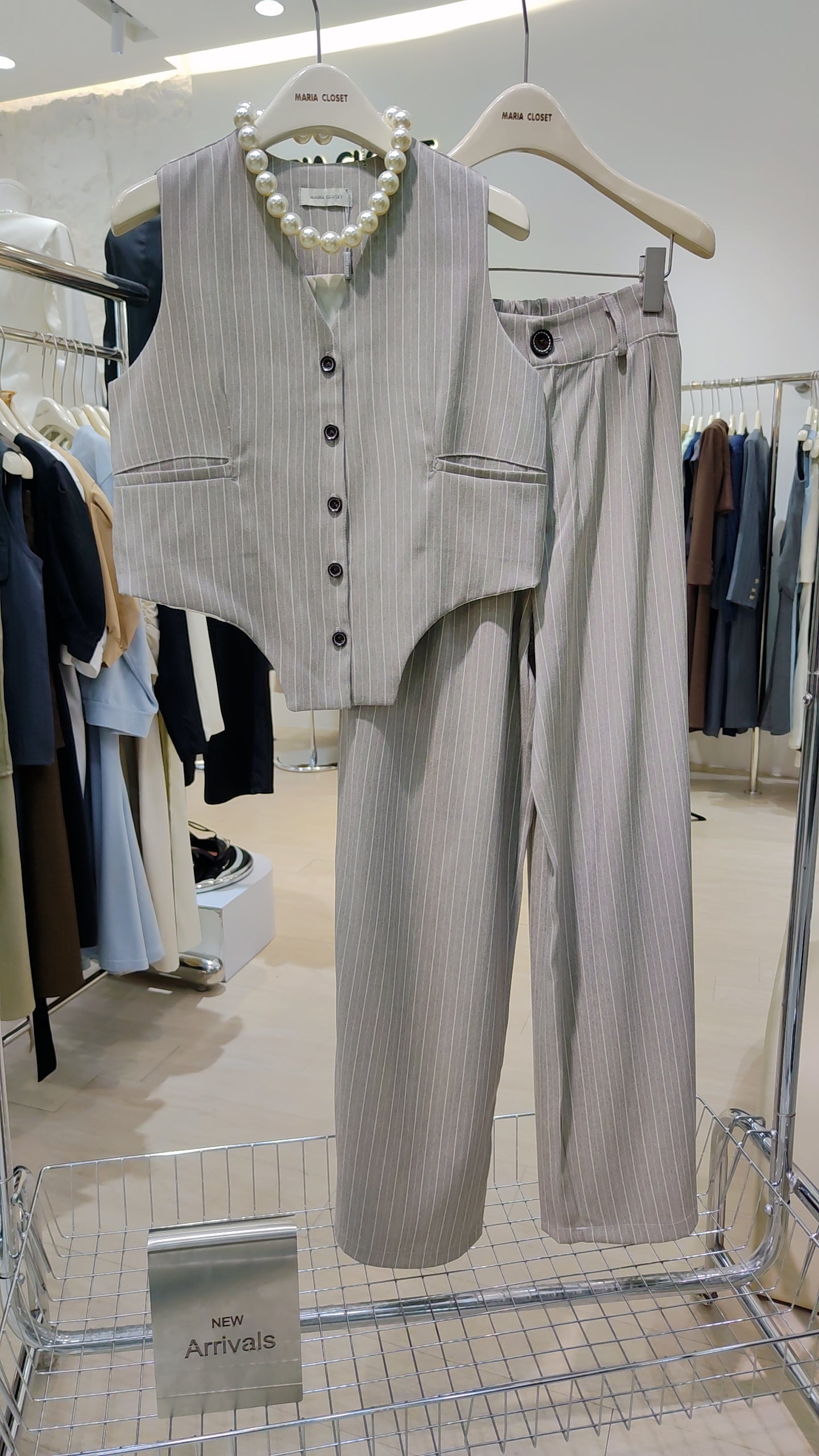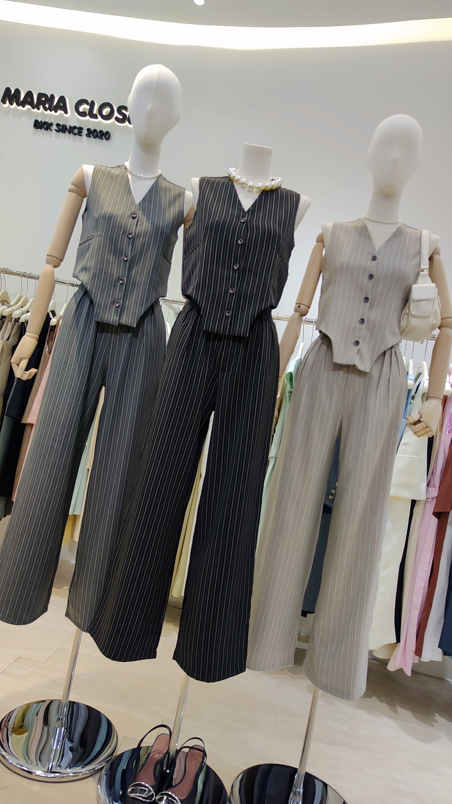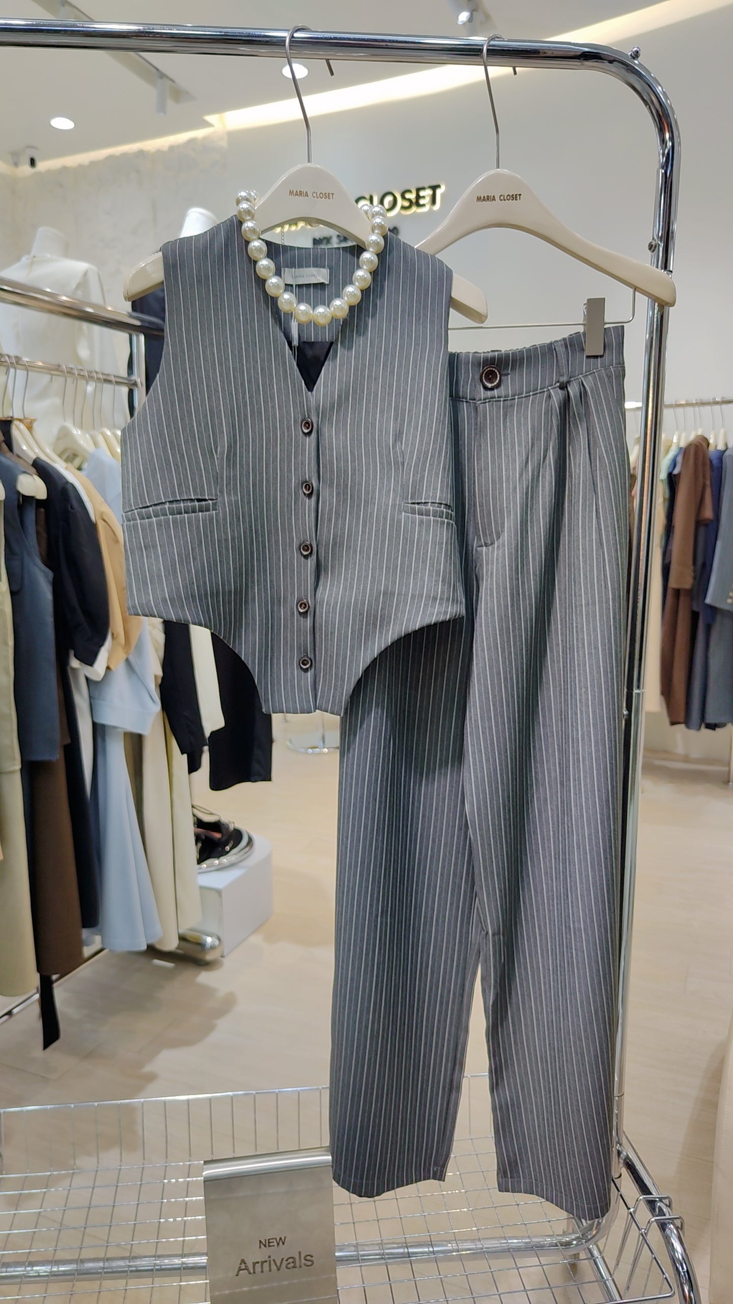🎨 英倫風✕中性帥氣,這款條紋套裝簡直是上班族與潮人衣櫃必備!V 領背心設計剪裁俐落,搭配寬鬆長褲修身又顯腿長,無論日常或辦公都能輕鬆駕馭。